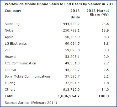 I guess this also means that there is a lot of room for Samsung, Nokia/Microsoft, and Apple to get more sales if they can swing people over from the 'Others'.