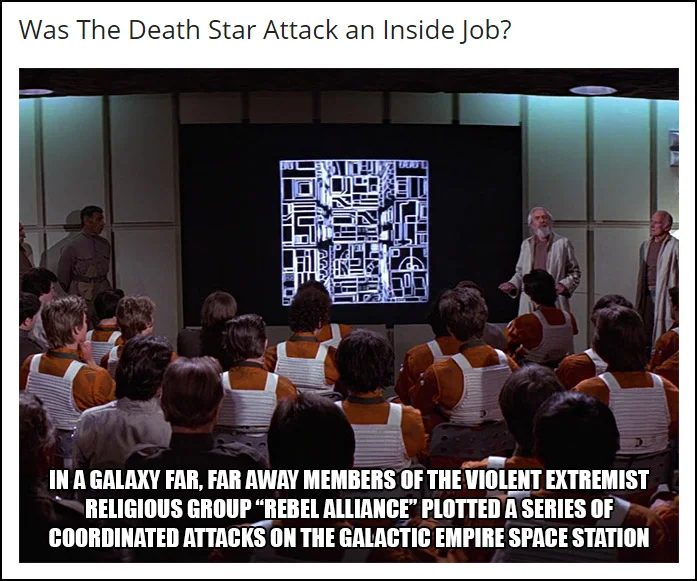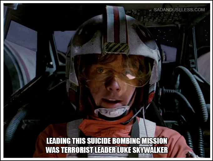 Just getting my daily dose of 'Sad and Useless' over at Sad and Useless ... see site link in the sidebar. Thought this was kind of funny. This is the attack on the Death Star from Star Wars but these are the reports from the other side of the conflict—there are at least two sides to every story!