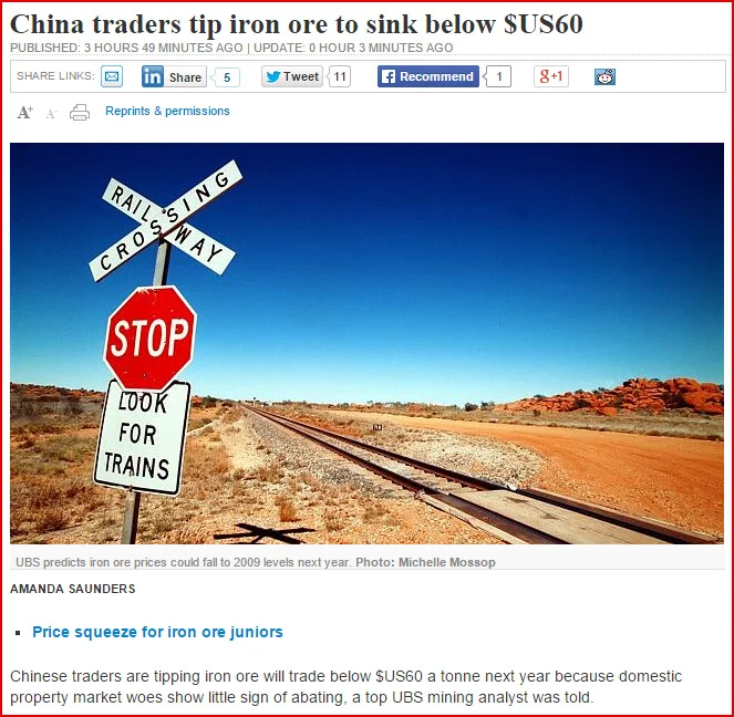 The previous forecast that iron ore was going to get down to $70 per tonne was depressing enough. Now we have Chinese market experts telling us to expect it to go below $60 per tonne.