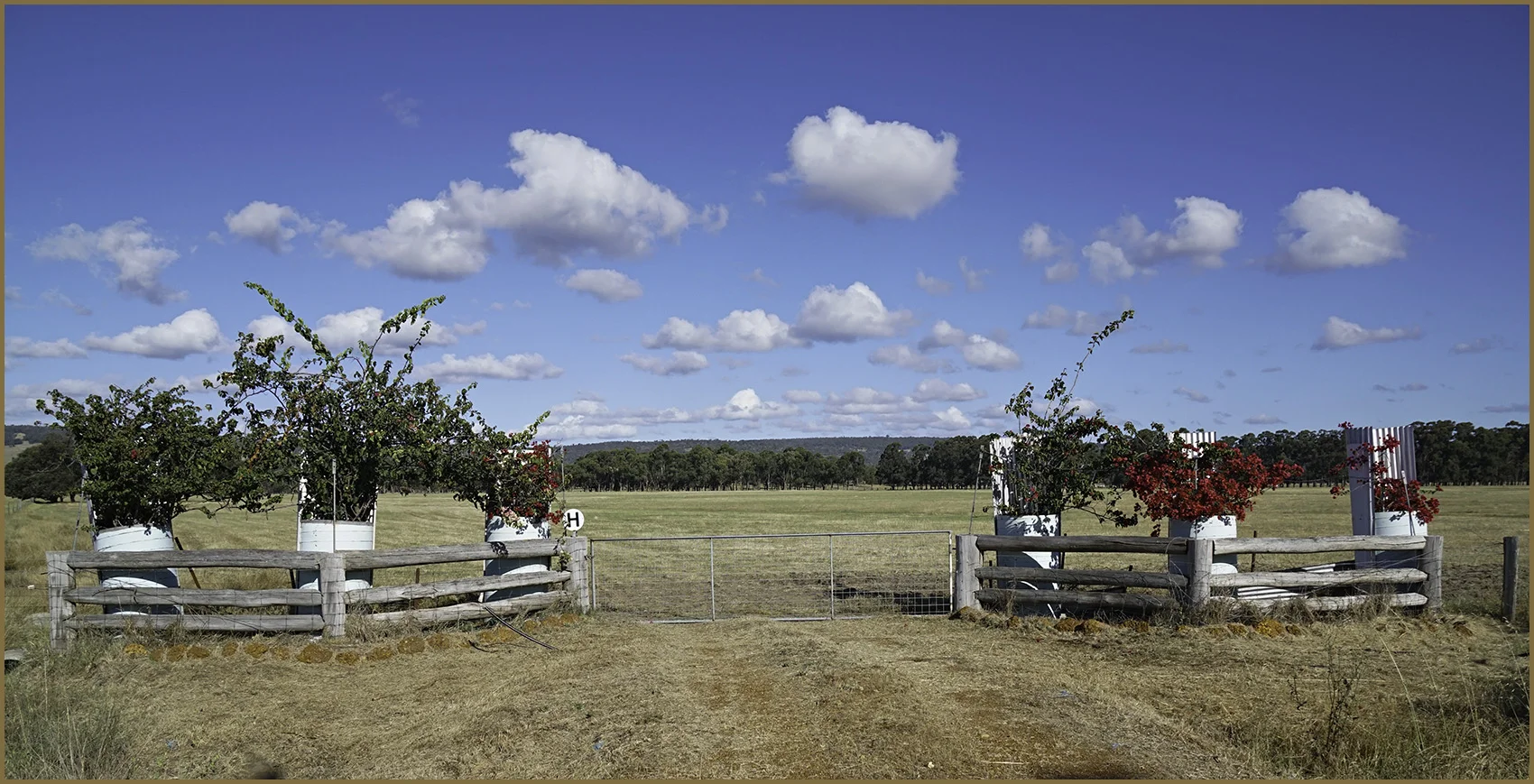 When I finally do actually make it back 'sometime later' to take said photographs I then have to deal with new challenges. Challenges like pulling off to the side of a 110 kph highway while causing minimum disruption to the traffic flow. Challenges like keeping an eye out for snakes in the grass as I tromp around the sides of the gate trying to find the most interesting angles, and also being careful not to fall down any holes and twist an ankle, or break a knee.