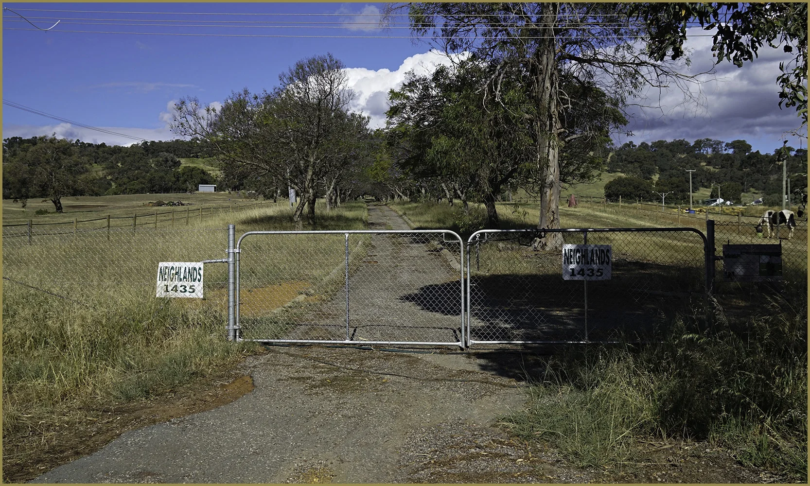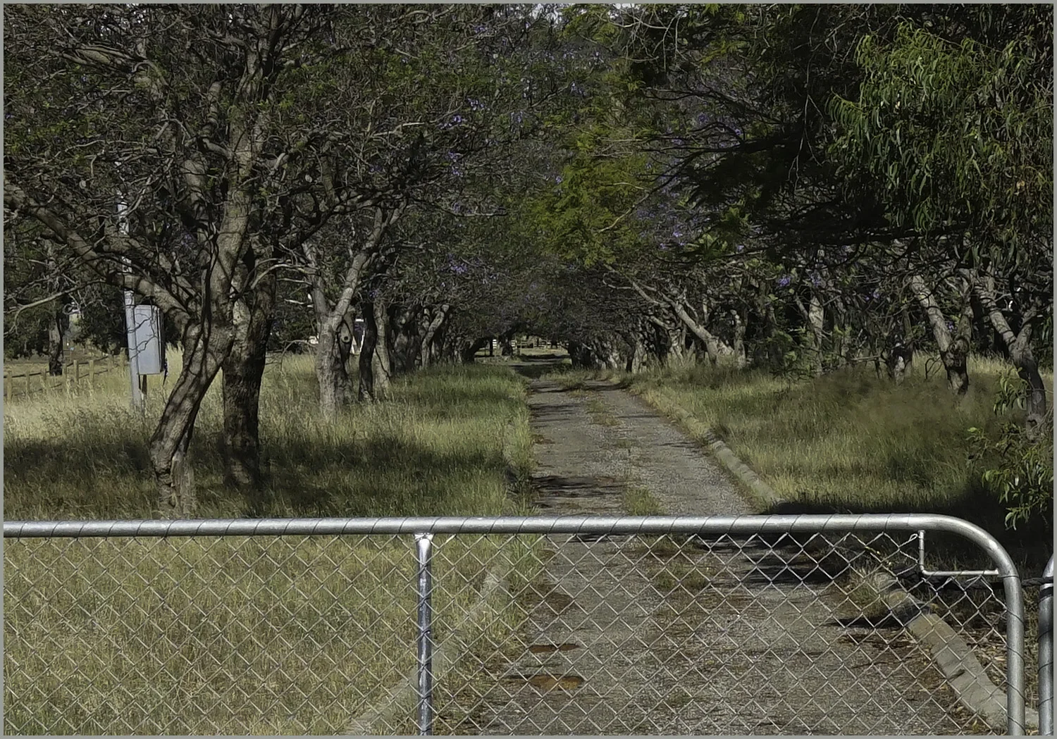 Again, you need to click on the picture and enlarge it, but you can almost make out the wild oats growing in the middle of the bitumen road way down under those trees at the end of the track.