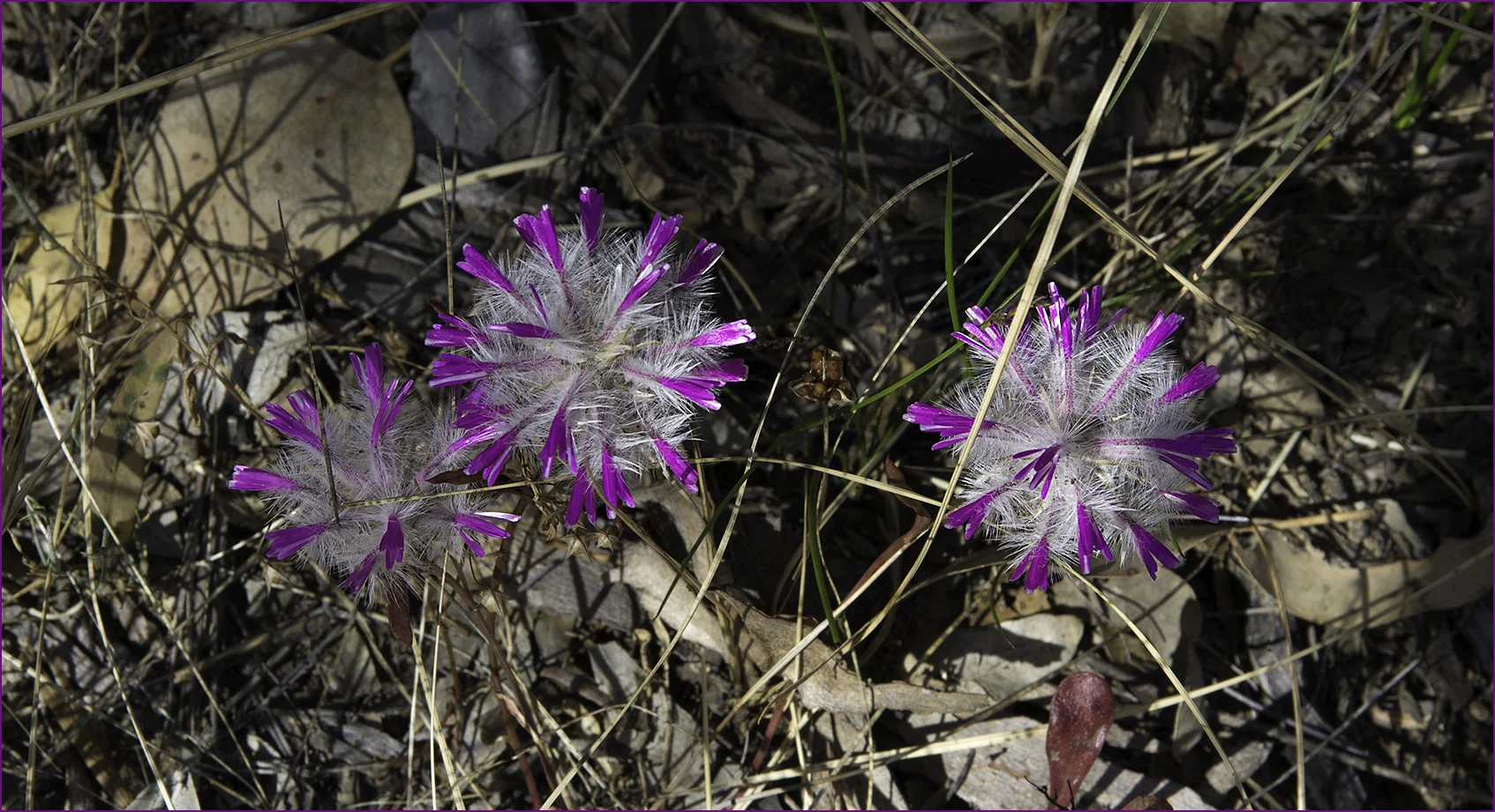 I have no idea what the following flowers are called. My friend's wife would have known, but I can't ask her. She has left this world, hopefully for a much better one. But as we walked around the Yornaning Dam these bright purple flowers just glowed in the undergrowth. It was like someone was shining a light on them, even though they were actually partially in shadow.
