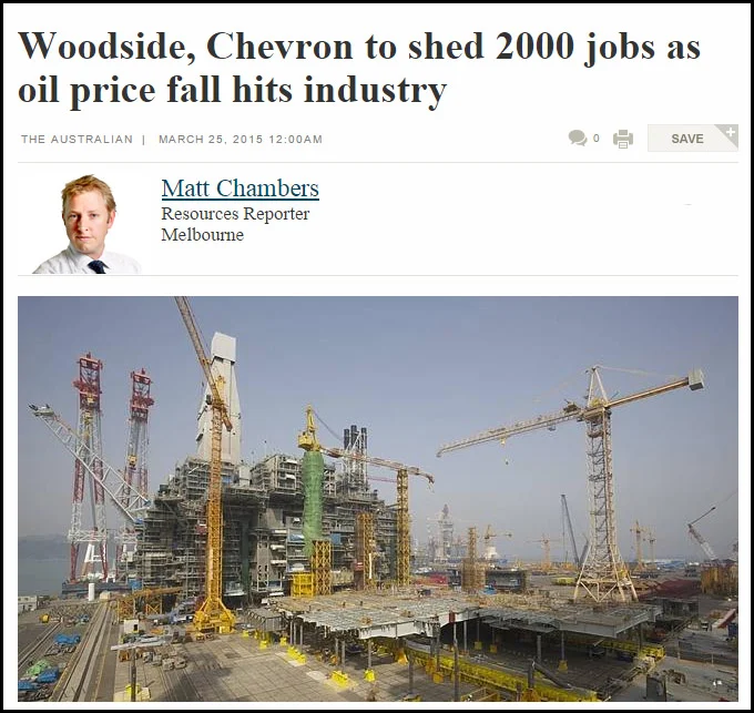 This week has been a bad-news week for the mining workforce of West Australia. Woodside have announced that they will be shedding 600 workers inclusive of staff and contractors. Rio is going into round three of their 'rightsizing' with the remainder of the 800 roles to go with most of the remaining personnel under scrutiny being staff. Then, just today, in the West Australian there has been a warning from Chevron to its 4,000-strong workforce that it is going to have to make its operations more lean with up to 600 positions considered for review.