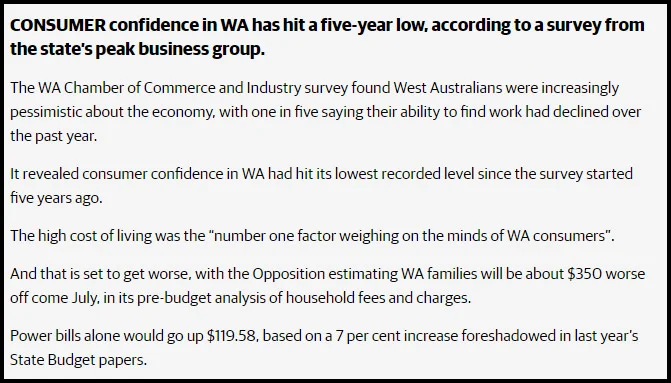 So it would appear that while the rest of Australia is not doing so badly, things aren't going that well for us lot here in Western Australia.