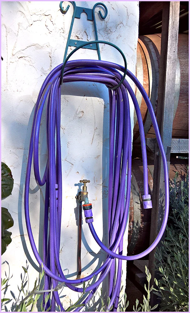 Yesterday we went to the Lavender Coffee House (or it might actually be called Cape Lavender) on Caves Road. The colour just about everything at the Cape Lavender coffee house is, as you might expect, lavender. Even the garden hose. Even the gnomes, but I don't have any pictures of them.