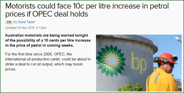 While we initially notice the impact of higher petrol prices when we fill up our cars, this cost will flow through to almost everything. Because almost everything we use in the western world needs oil products to get it to us. This includes planting, harvesting, transporting, refining, processing, heating, cooling, etc., etc. If crude continues to climb then you can expect to see the flow through in food prices in 2017—as if the cost of food has not already increased enough through 2016 due to other causes.