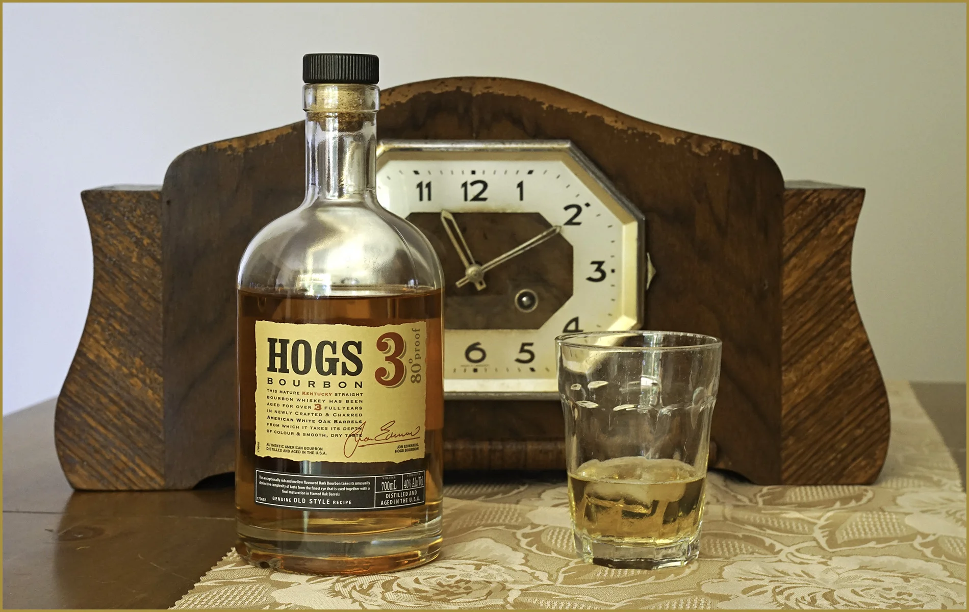 Generally when I am stocking up my liquor supply, which usually means buying a fresh bottle of Bourbon and a half dozen bottles of red wine to get me through the week, I just get my usual Jim Beam. But today I was in a rare adventurous kind of mood and I spotted the Hogs 3 American-style.