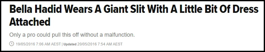 Well we certainly know now after the Huffington Post headline "Bella Hadid wears giant slit with a little bit of dress attached".