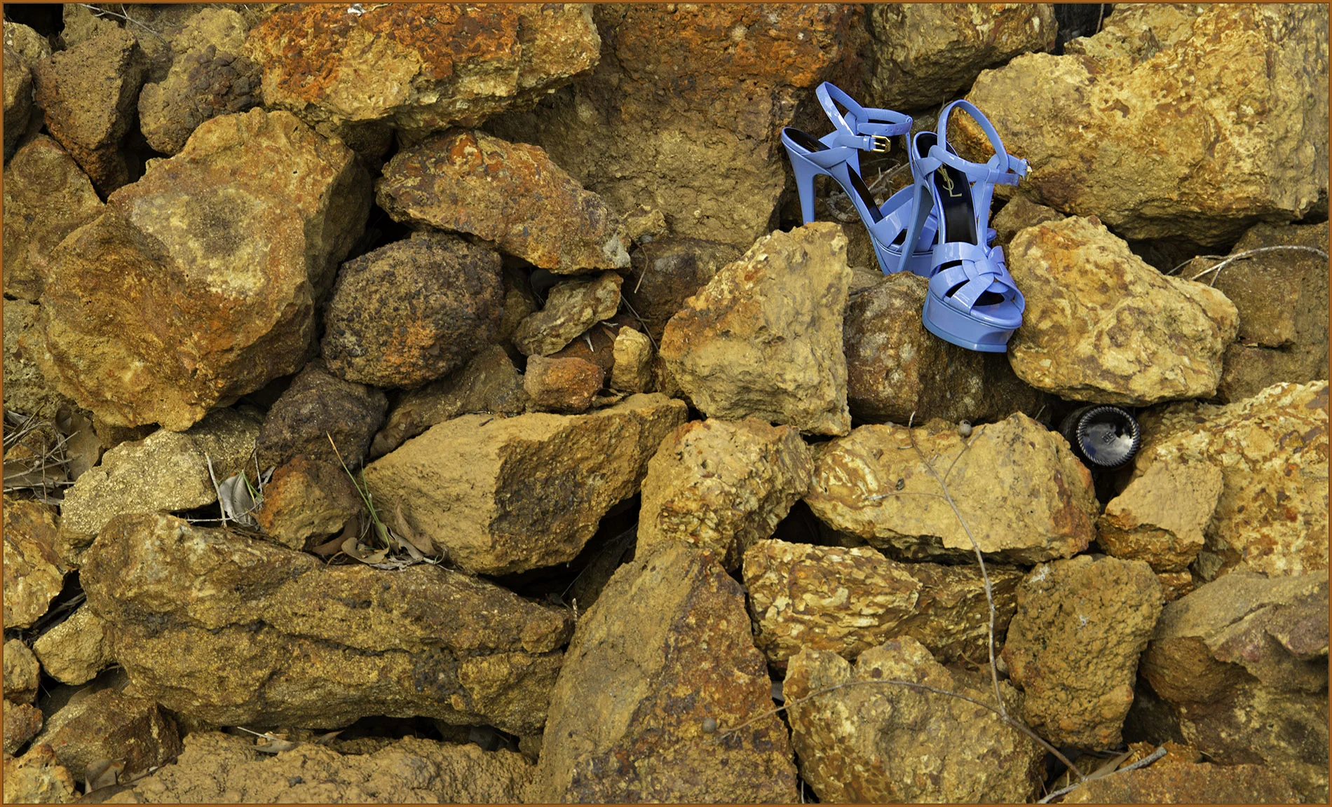 A: Place a pair of light blue YSL Tribute 105 high heels on them.