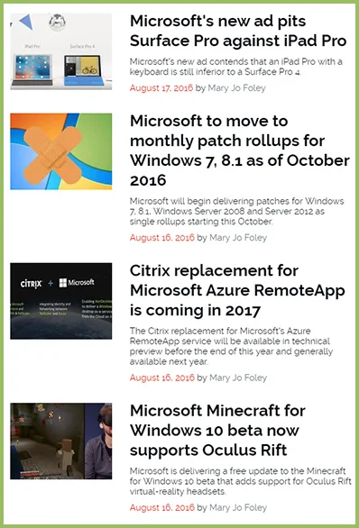 The screen capture taken from the All About Microsoft blog (at right) provides a small insight into some of the topics that Mary Jo covers.