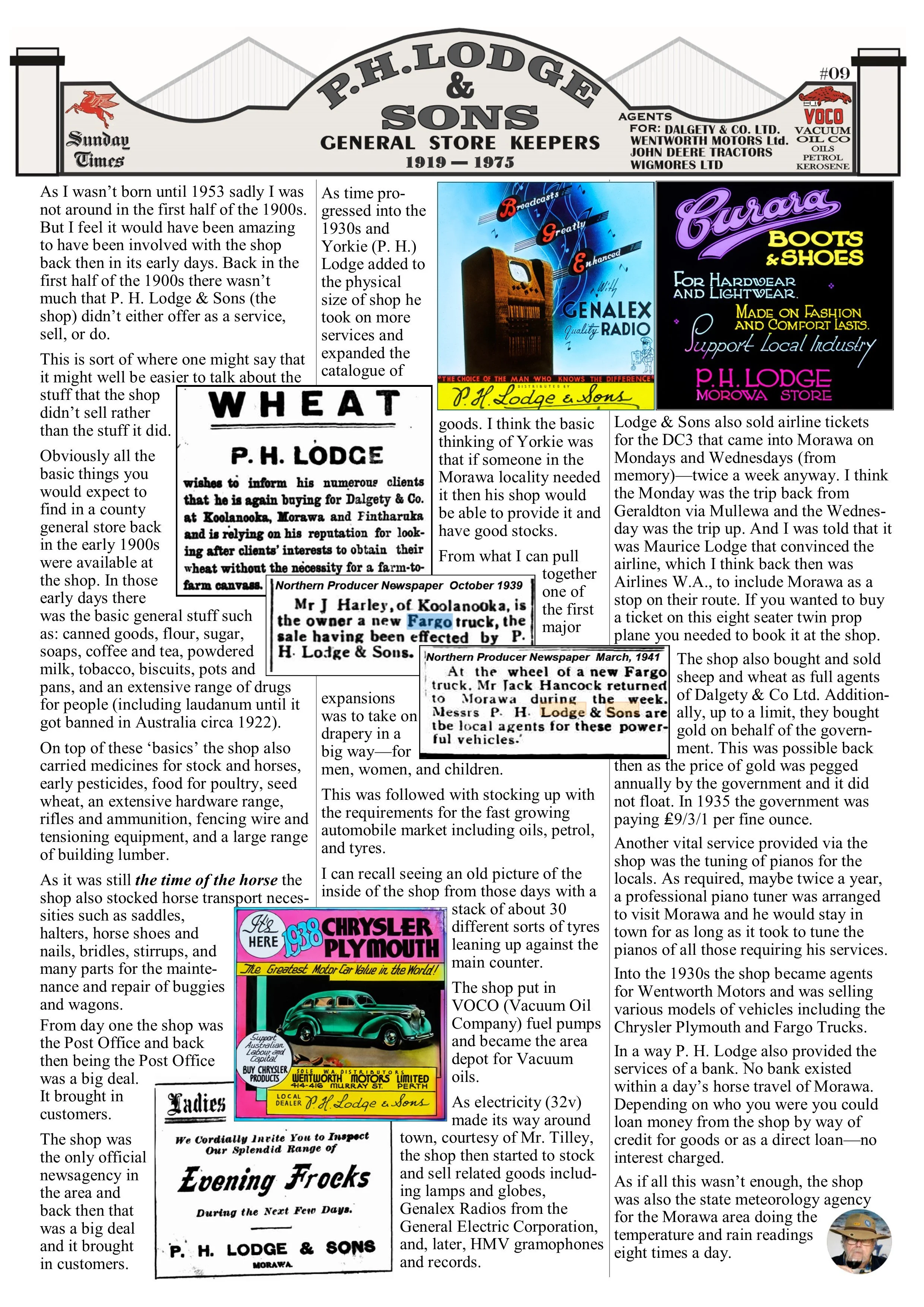 Here is my ninth article featuring P. H. Lodge & Sons that I have published in the Morawa Scene.